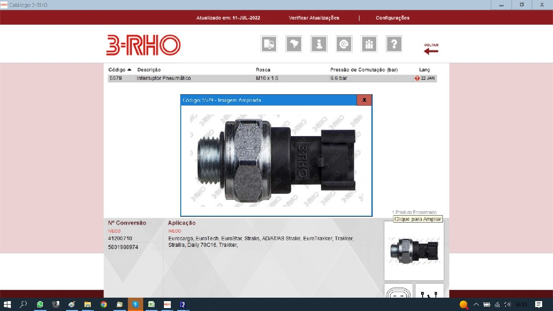 39621 - INTERRUPTOR PNEUMATICO IVECO EUROTECH/EUROTRAKKER/TECTOR/STRALLIS/EUROCARGO 6.6 BAR 16X1.5 MM