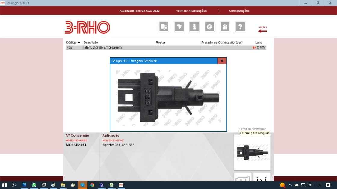 39707 - INTERRUPTOR SENSOR PEDAL EMBREAGEM MB SPRINTER 311/415/515