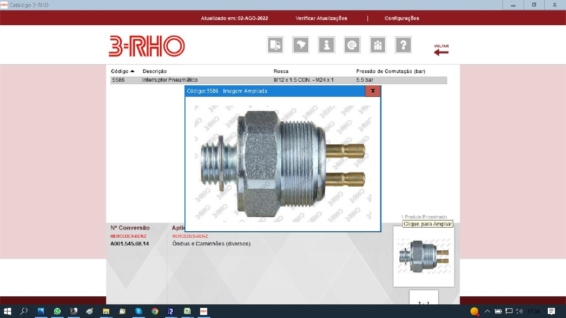39708 - INTERRUPTOR PNEUMATICO MB ONIBUS/CAMINHAO 12X1.5 MM 24X1.0 MM 5.5 BAR