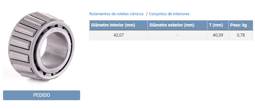 39728 - ROLAMENTO CAMBIO PONTA ENTALHADO IVECO 16S-221/16S-1685/16S-2280