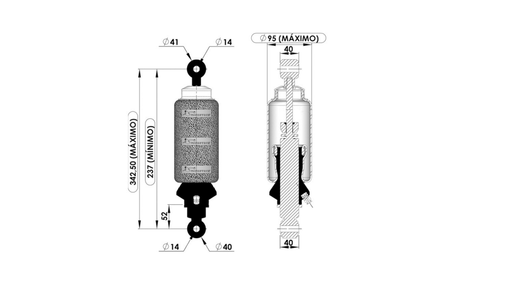 40132 - AMORTECEDOR CABINE TRAS VOLVO FH/FM HORIZONTAL