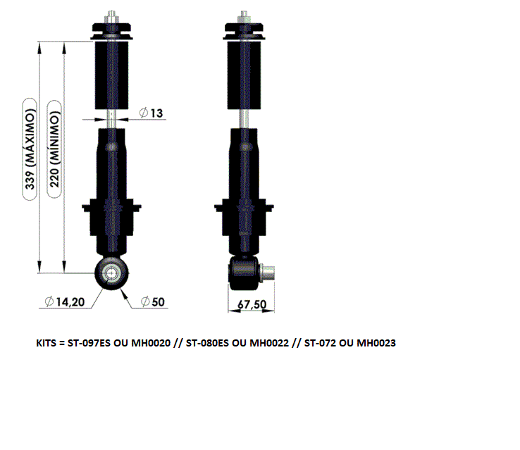 40125 - KITS AMORTECEDOR CABINE TRAS MB AXOR 1938S/1944S ESTRADEIRO C/ MOLA