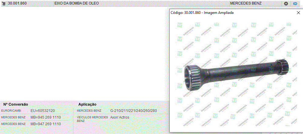 40308 - EIXO BOMBA OLEO CAMBIO MB AXOR/ACTROS G 131/210/211/221/240/260/280