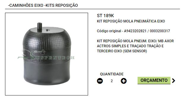 40974 - KITS PNEUMATICO FOLE SUSPENSAO TRAS MB AXOR/ACTROS S/ SENSOR
