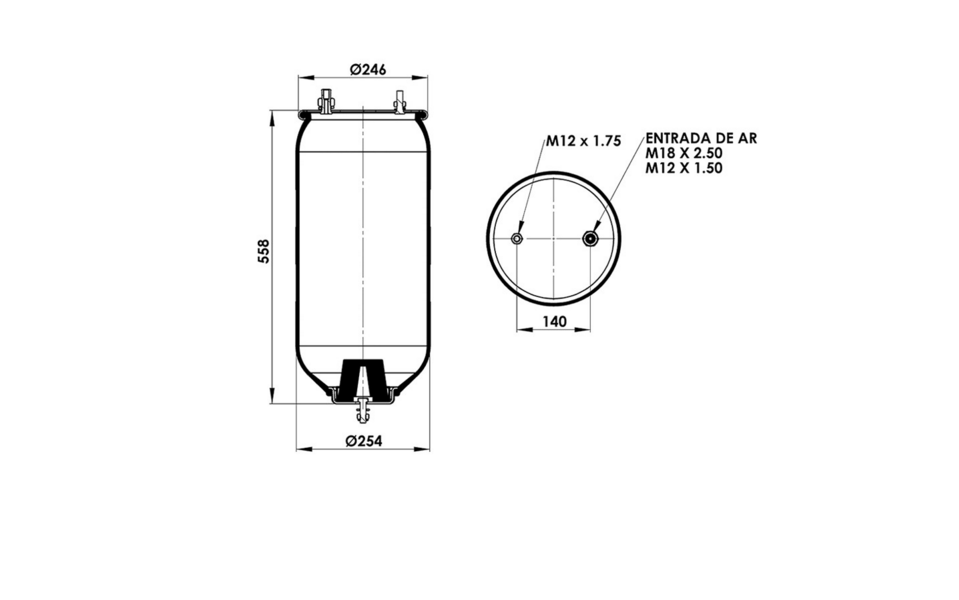 40972 - KITS PNEUMATICO FOLE SUSPENSAO TRAS SCANIA P/G/R 114/124 P/ BASE SUSPENTECH HASTE 22MM