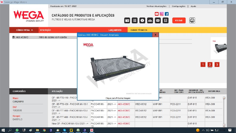 41116 - FILTRO AR CONDICIONADO CABINE DAF CF85 COM CARVAO 21/....