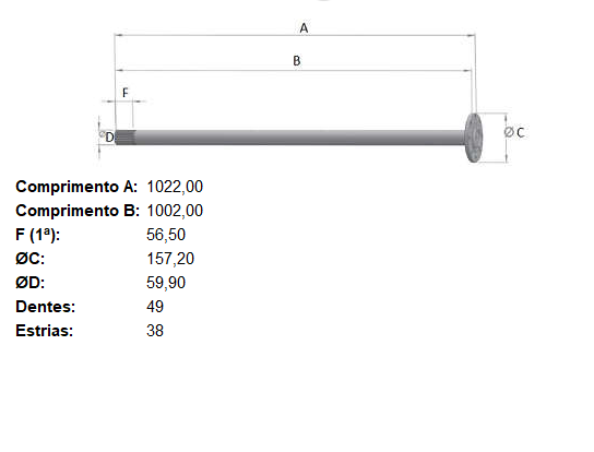 41512 - SEMI EIXO FORD CARGO/VW DIF RS/MS155 .../2001 LONGO LD
