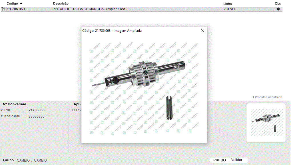 42209 - PISTAO ACIONAMENTO TROCA MARCHA SIMPLES REDUZIDO VOLVO VT2412B/AT2412C/AT2512C