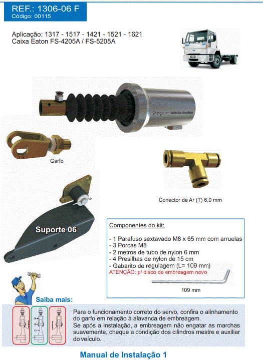 42336 - SERVO EMBREAGEM ADAPTACAO FORD 816/1119 C/ KITS ADAP CARCACA EMBR SUBST. CIL. INF