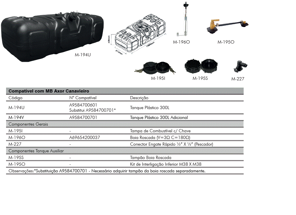 43451 - TANQUE COMBUST 300L PLAST QUADRADO MB AXOR CANAVIEIRO BOIA ROSQUEADA