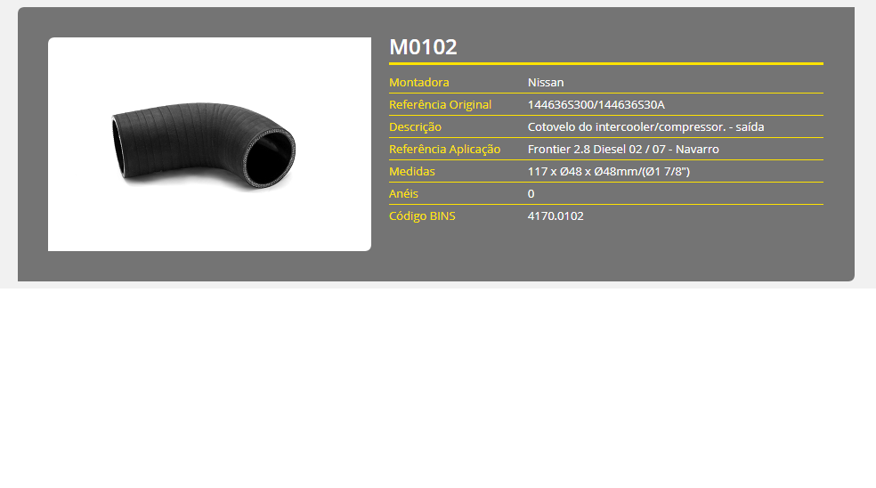 43753 - MANGUEIRA INTERCOOLER COTOVELO NISSAN FRONTIER 2.8 02/07
