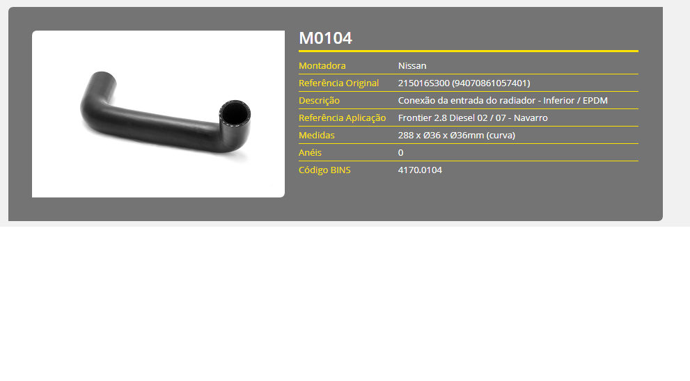 43754 - MANGUEIRA RADIADOR INF NISSAN FRONTIER 2.8 02/07