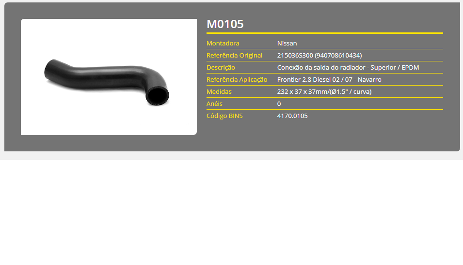 43755 - MANGUEIRA RADIADOR SUP NISSAN FRONTIER 2.8 02/07