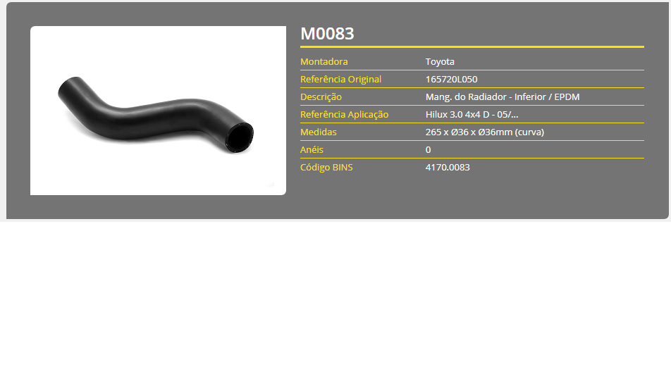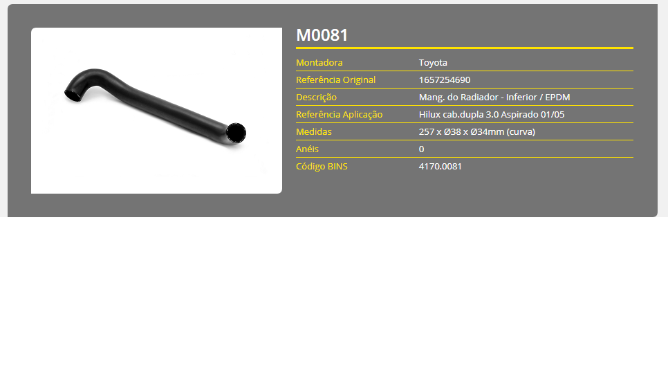 43761 - MANGUEIRA RADIADOR INF HILUX 3.0 ASPIRADO 01/05