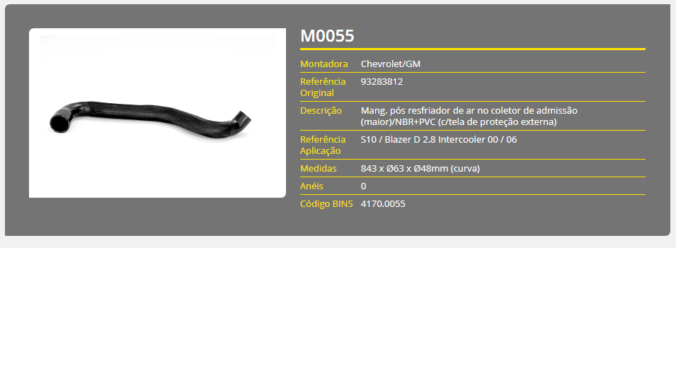 43770 - MANGUEIRA RESFRIADOR AR COLETOR ADM GM S10/BLAZER 2.8 00/06 MAIOR