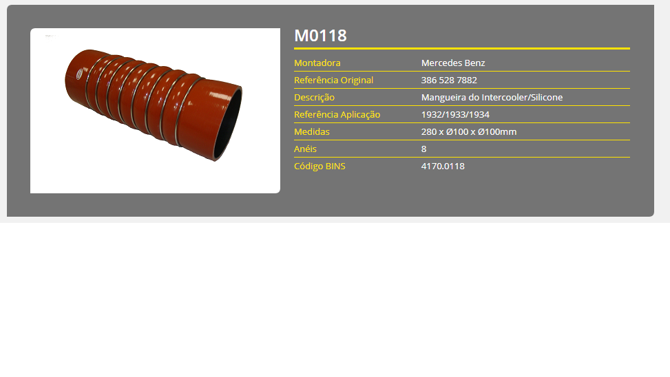 43778 - MANGUEIRA INTERCOOLER MB 1932/1933/1934