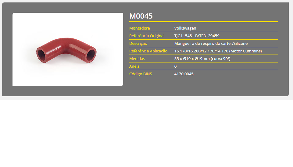43783 - MANGUEIRA RESPIRO CARTER VW 16.170/16.220/17.170/14.170 CUMMINS