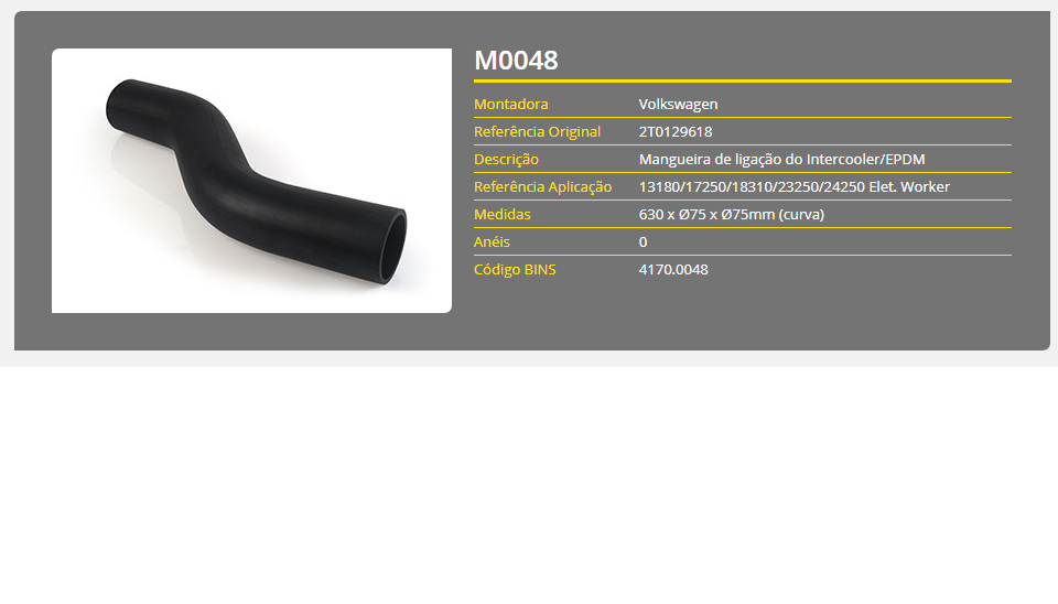 43785 - MANGUEIRA INTERCOOLER VW WORKER 13.180/17.250