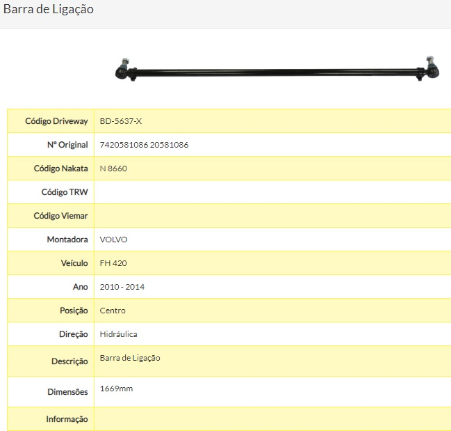 4448 - BARRA DIRECAO VOLVO CURTA FH12 .../2006