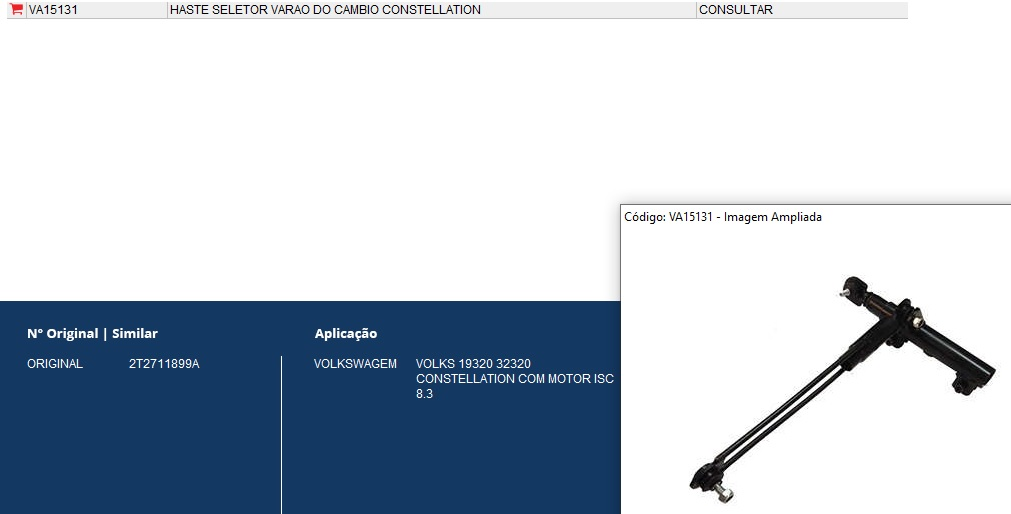 43986 - ALAVANCA MUDANCA CAMBIO VW CONSTELLATION 19.320/32.320 CUMMINS ISC