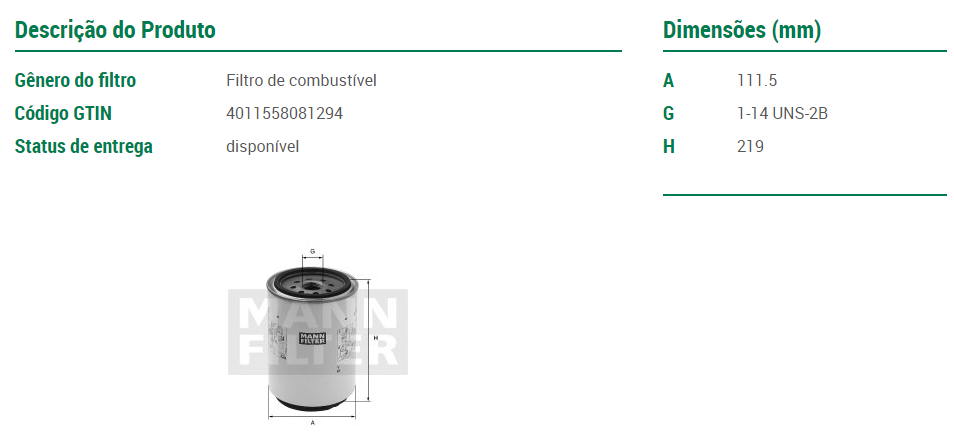 44027 - FILTRO RACOR COMBUSTIVEL MAN/VW ELETRONICO/MWM/CUMMINS TITAN/WORKER/DELIVERY 1X14UNS2B 10-MICRA C/ VALVULA USA C/ COPO CI-17312