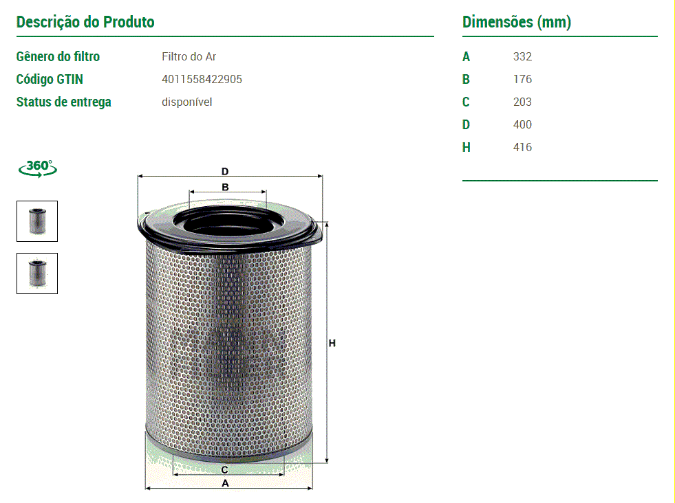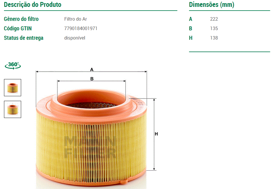 44048 - FILTRO AR VOLVO FH13/FH16 D16 2013/...
