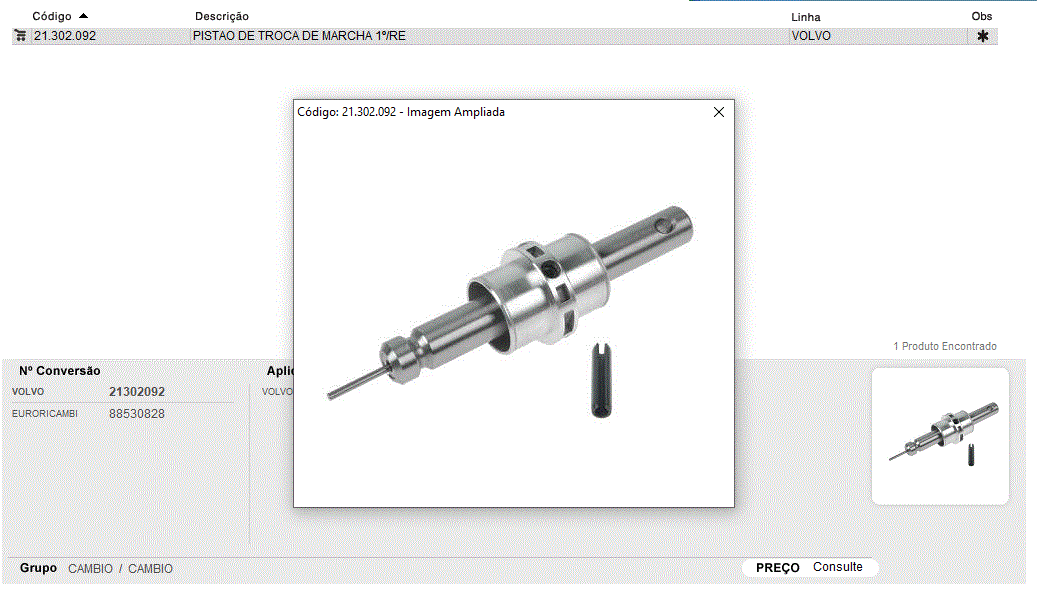 44063 - PISTAO ACIONAMENTO TROCA MARCHA 1-RE VOLVO VT2412B/AT2412