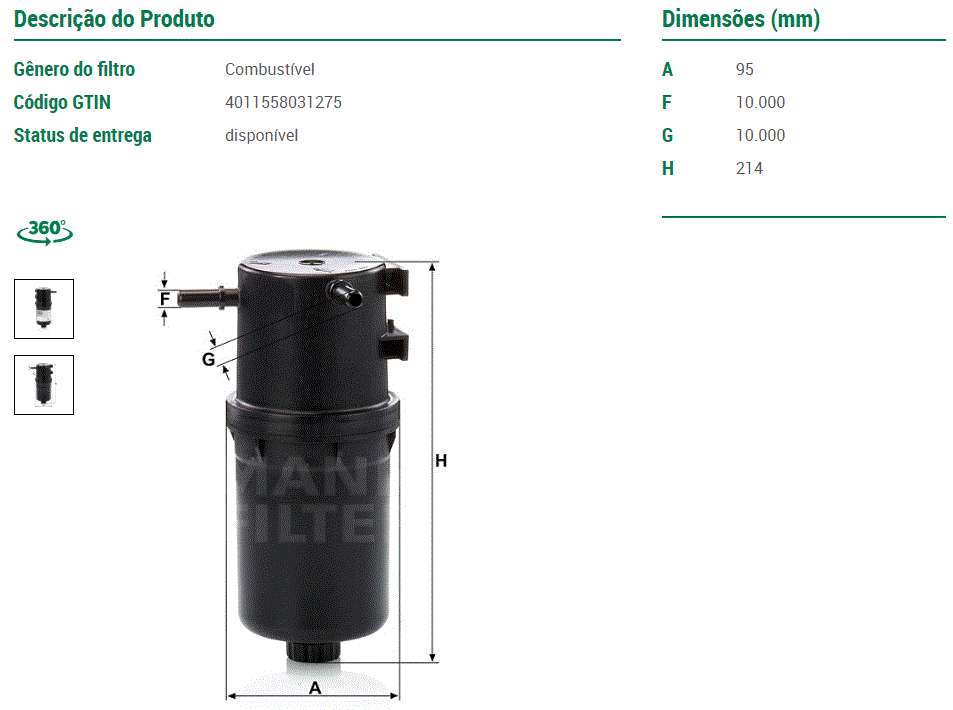 44178 - FILTRO COMBUSTIVEL FORD RANGER 2.8 POWER STROKE 01/06