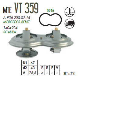 44222 - VALVULA TERMOSTATICA SCANIA 114/124 DUPLA PEQUENO 75 GRAUS