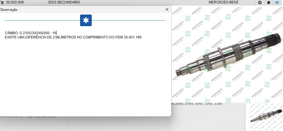44224 - EIXO ENTALHADO CAMBIO MB G 210/240