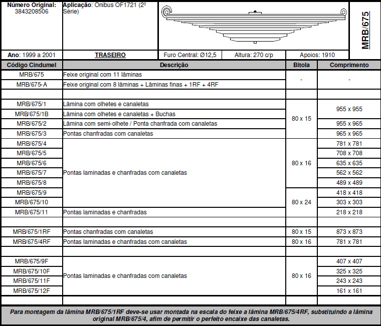 4514 - FECHO MOLA FECHO TRUCK TRAS MB OF1721 2ª SERIE C/ 8 LAMINAS FURO CENTRO REFORCADO