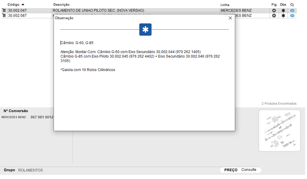 44819 - ROLAMENTO EIXO PILOTO MB G 60/85 NOVA VERSAO