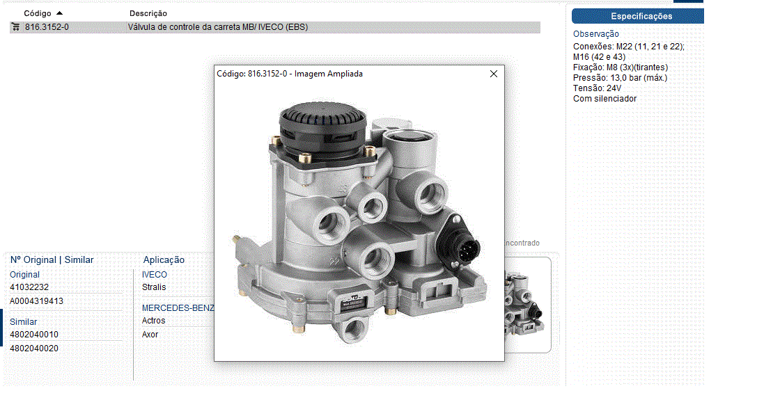 45759 - VALVULA BLOQUEIO DUPLA MB ATEGO 2425/2428