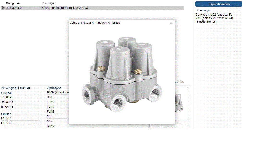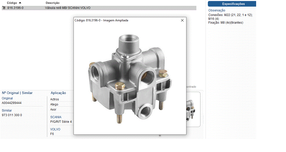 45770 - VALVULA DISTRIBUIDORA FORD CARGO/VW 16.300/35.300/2425/2622/2630/2631/3222