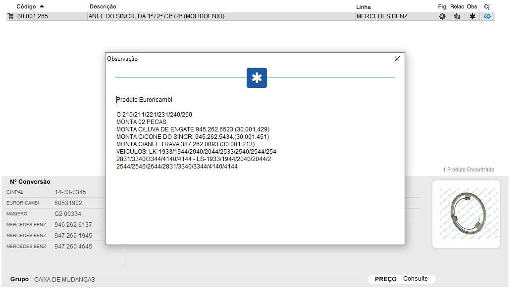 45784 - ANEL SINCRONIZADO CAMBIO MB 1/2/3/4 G 210/211/230/240/330 MODERNO MOLIBDENIO