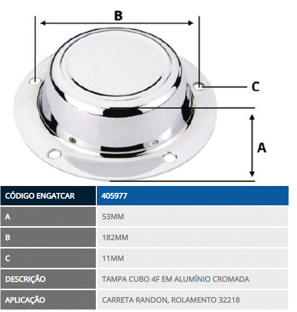 45790 - TAMPA CUBO 4-FURO CARRETA S/ LOGO 53X184X11MM CROMADA