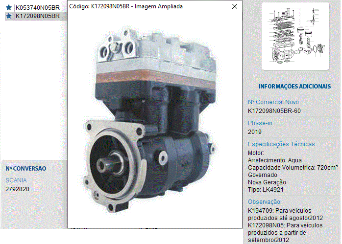46785 - COMPRESSOR AR SCANIA 124 P/G/R SERIE 5 .../2012 2-CIL MODELO KNORR LK4951 720CC CONEXAO ENCAIXE USA ENGRENAGEM CI-32124