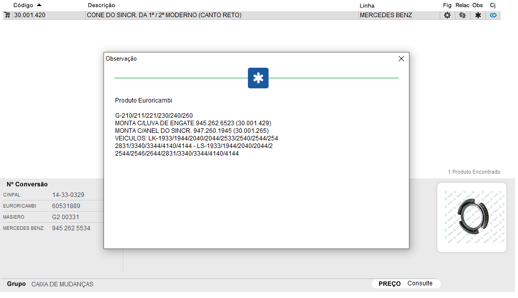47091 - CONE SINCRONIZADO CAMBIO MB 3-4 G131 2ª GERACAO