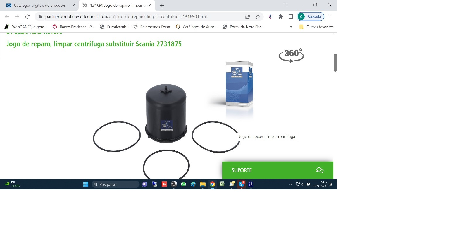47236 - FILTRO ROTATIVA SCANIA 124 P/G/R NTG MOTOR DC9 DC13 C/ANEIS BORRACHA