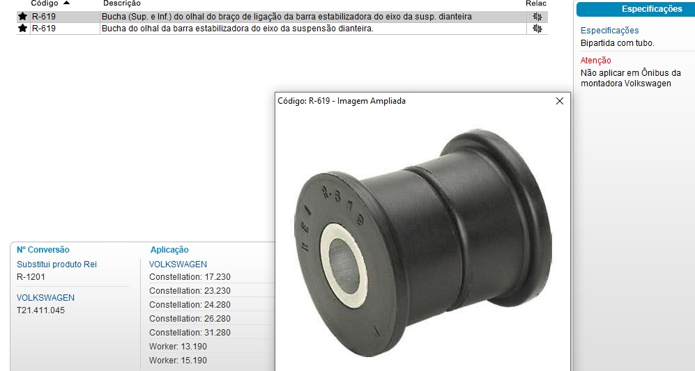 4822 - BUCHA BIPARTIDA BARRA ESTABIL MB/CARGO 93/98 VW 12.140 ATE 40.300 C/CANO PONTA