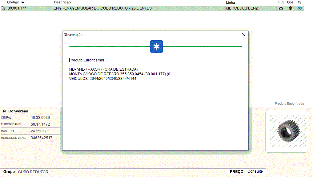 47411 - ENGRENAGEM CAMBIO MB 4 INF. G 3,50/60