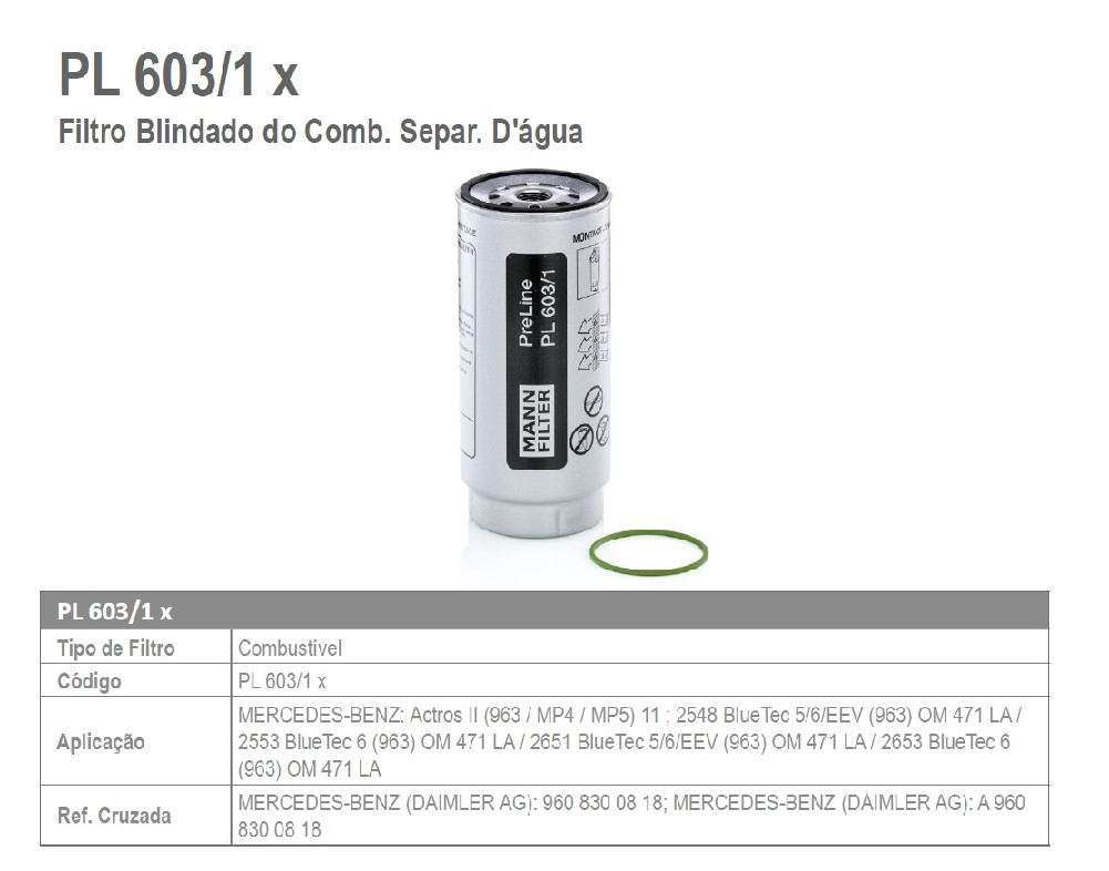 47986 - FILTRO DIESEL MB ACTROS 2548/2553/2653 BLUE TEC 5/6 OM471LA SEPARADOR AGUA
