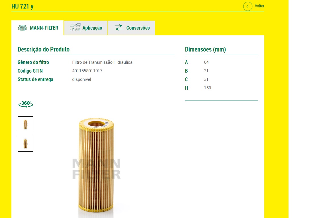 47988 - FILTRO LUBRIF VOLVO FH/FM/NH/VM 64X31X31X150 MM