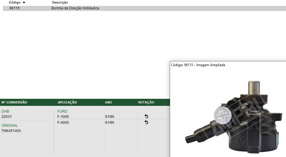 5031 - BOMBA DIR HIDRAULICA FORD F1000/F4000 ROTACAO ESQUERDA LE