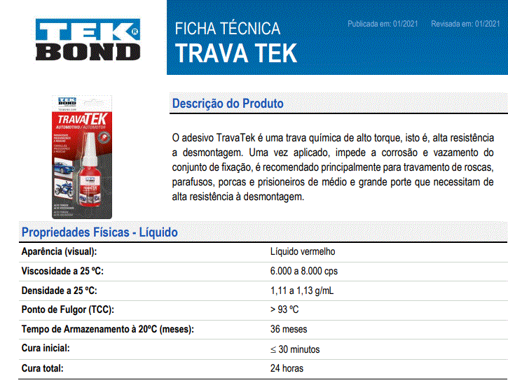 5104 - COLA TRAVA ROSCA PARAFUSO/PORCA AUTO LOCK 10G GRANDES FOLGAS VERMELHO