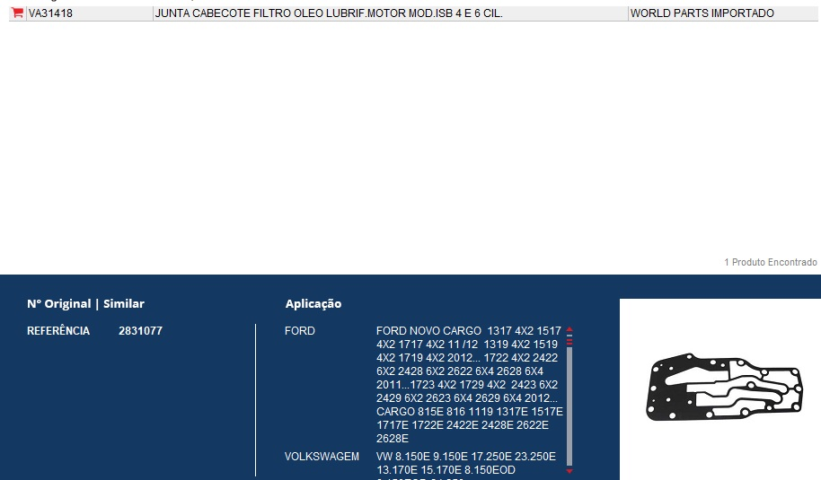5393 - JUNTA CABECOTE FILTRO RESFRIADOR OLEO MOTOR FORD CARGO/VW CUMMINS B