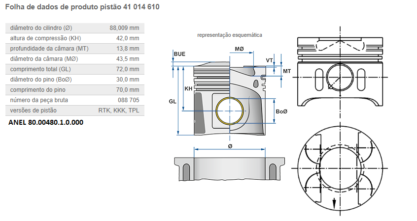 5405 - PISTAO C/ANEL MOTOR MB OM 611/612 ACCELO 715C SPRINTER 311/ 313/413 0.50