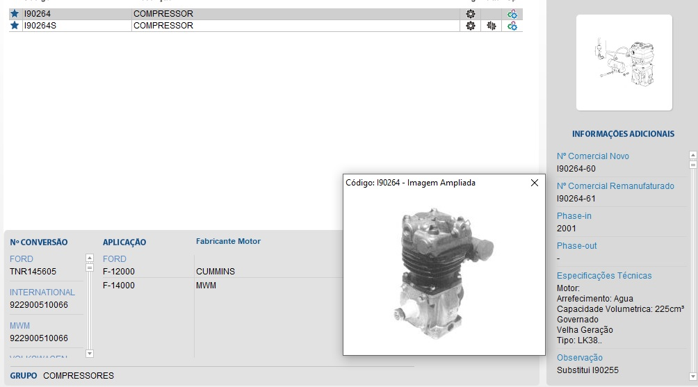 5452 - COMPRESSOR AR FORD F12000/F14000 LK38 1-CIL 225CC