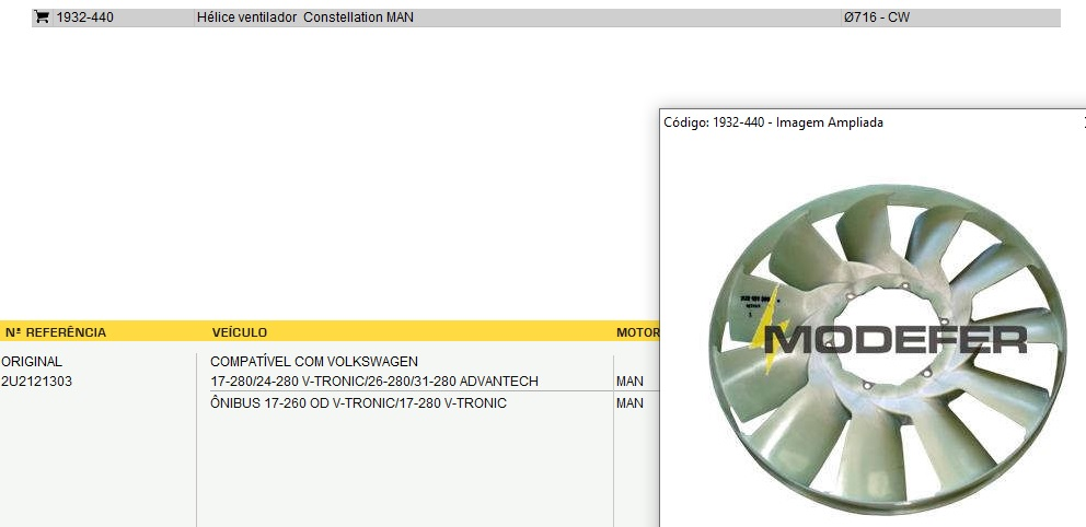 5459 - HELICE PLASTICO VW MAN 17.280/24.280 C/ ARO 11-PAS