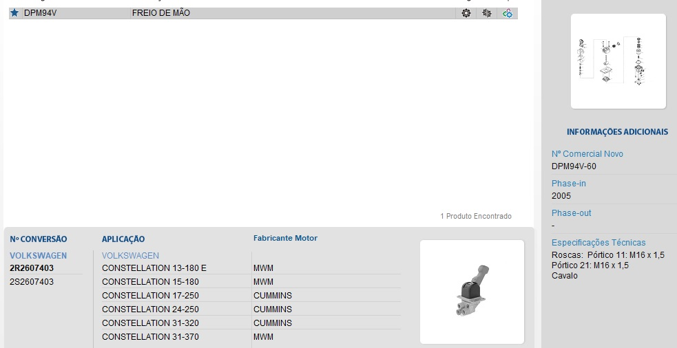 6319 - VALVULA FREIO MAO VW CONSTELLATION MWM/CUMMINS